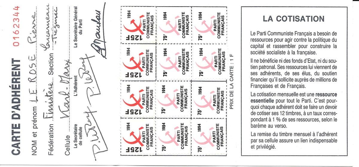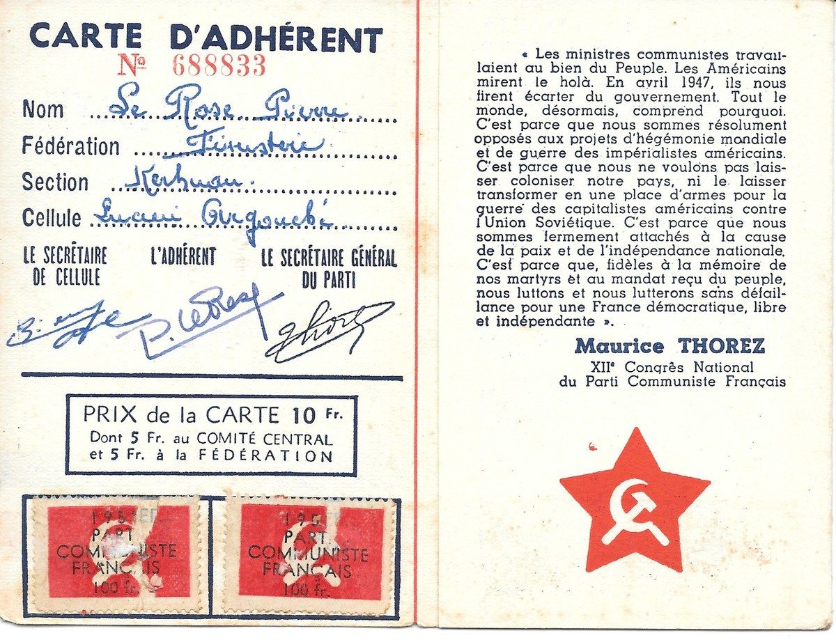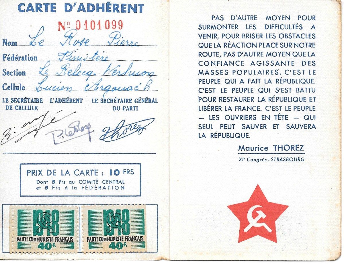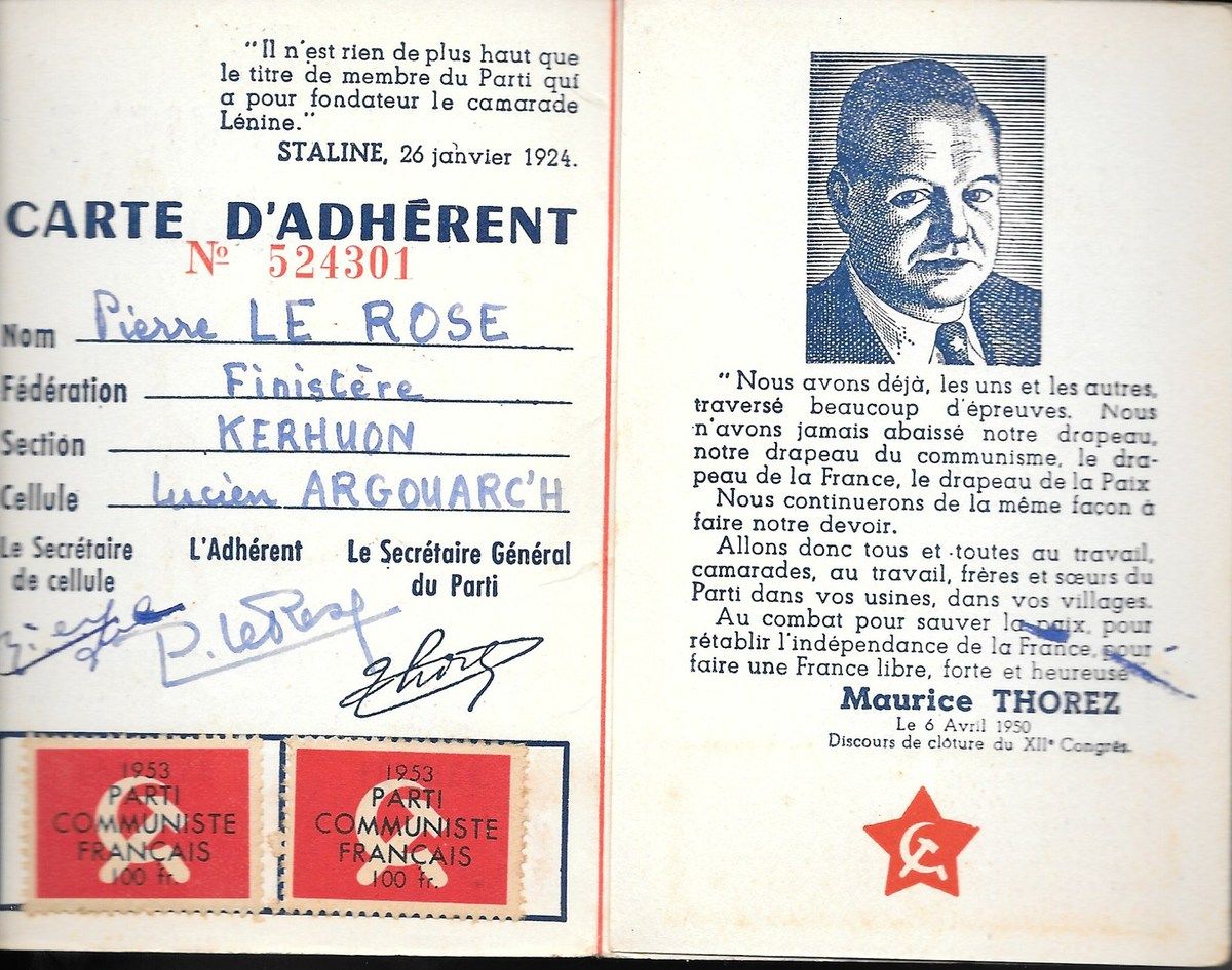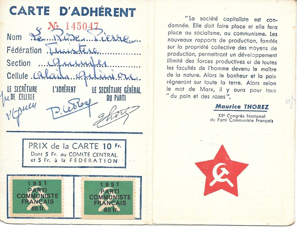 A l'heure où beaucoup se font un titre de gloire à se dire apolitique, citoyen sans parti, ni parti-pris, non carté, percevant l'engagement dans des organisations comme une entrave à leur liberté et une forme de caution à ce qui les dépasse, un risque de compromission par rapport à toutes sortes de magouilles et de compromis boiteux, il est précieux, par-delà l'ère du temps, de retrouver des dizaines d'années de militantisme et d'histoire communiste à travers les cartes que Pierre Le Rose collectionnait comme d'autres les médailles... du mérite agricole, du travail, du bon soldat, sauf qu'elles le portaient, non vers la célébration de sa petite personne, mais vers le service de la cause.