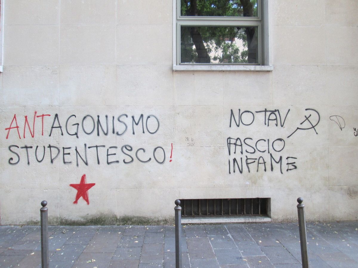 Ici à Padoue, ville universitaire, mais dans beaucoup de villes italiennes, des slogans anti-fascistes signés par les communistes, ou des anarchistes